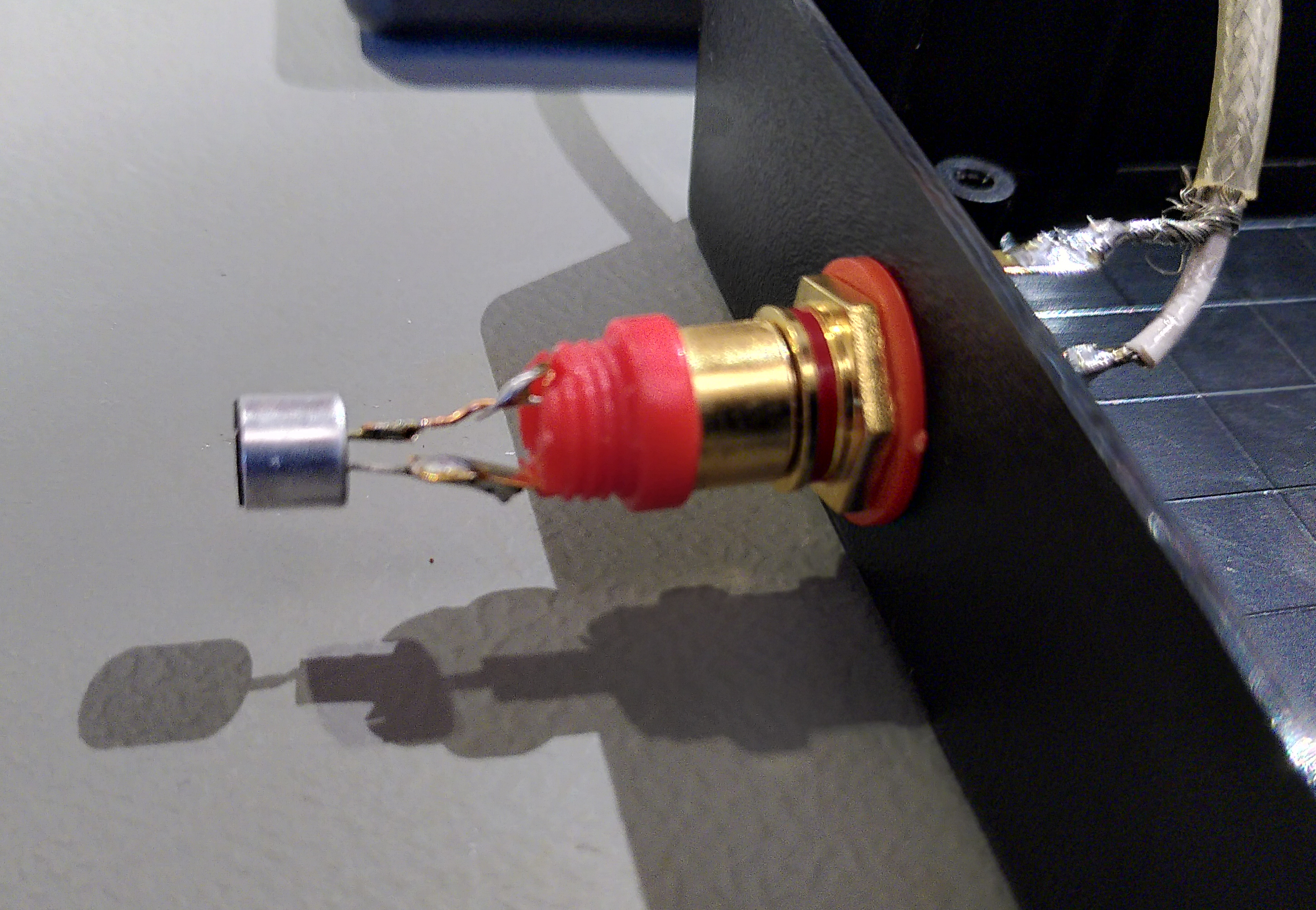 Als Mikrophoneingang wurde eine Cinch-Buchse genutzt. Das Mikrophon selbst hat einen Durchmesser von 6mm und findet in der Steckertülle Platz.