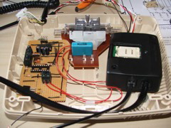 Die größten benötigten Teile (Telefon und GSM-Modul) wurden bei einem Internet-Auktionshaus für wenig Geld erstanden. Die Elektronik-Komponenten stammen hauptsächlich aus Wühlkisten. Der Aufbau der Adapterplatinenen-Spannungsversorgung ist relativ einfach, ein linearer Spannungsregler (Low-Drop-Voltage-Regulator) stellt eine Spannung von 5V für PIC-Microcontroller und den RS-232-IC zur Verfügung.
