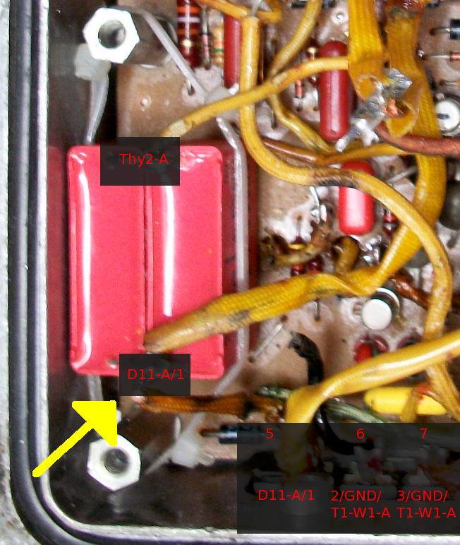 Diode D11 ab, oder an einer Seite des C8. Alternativ tut es auch die
